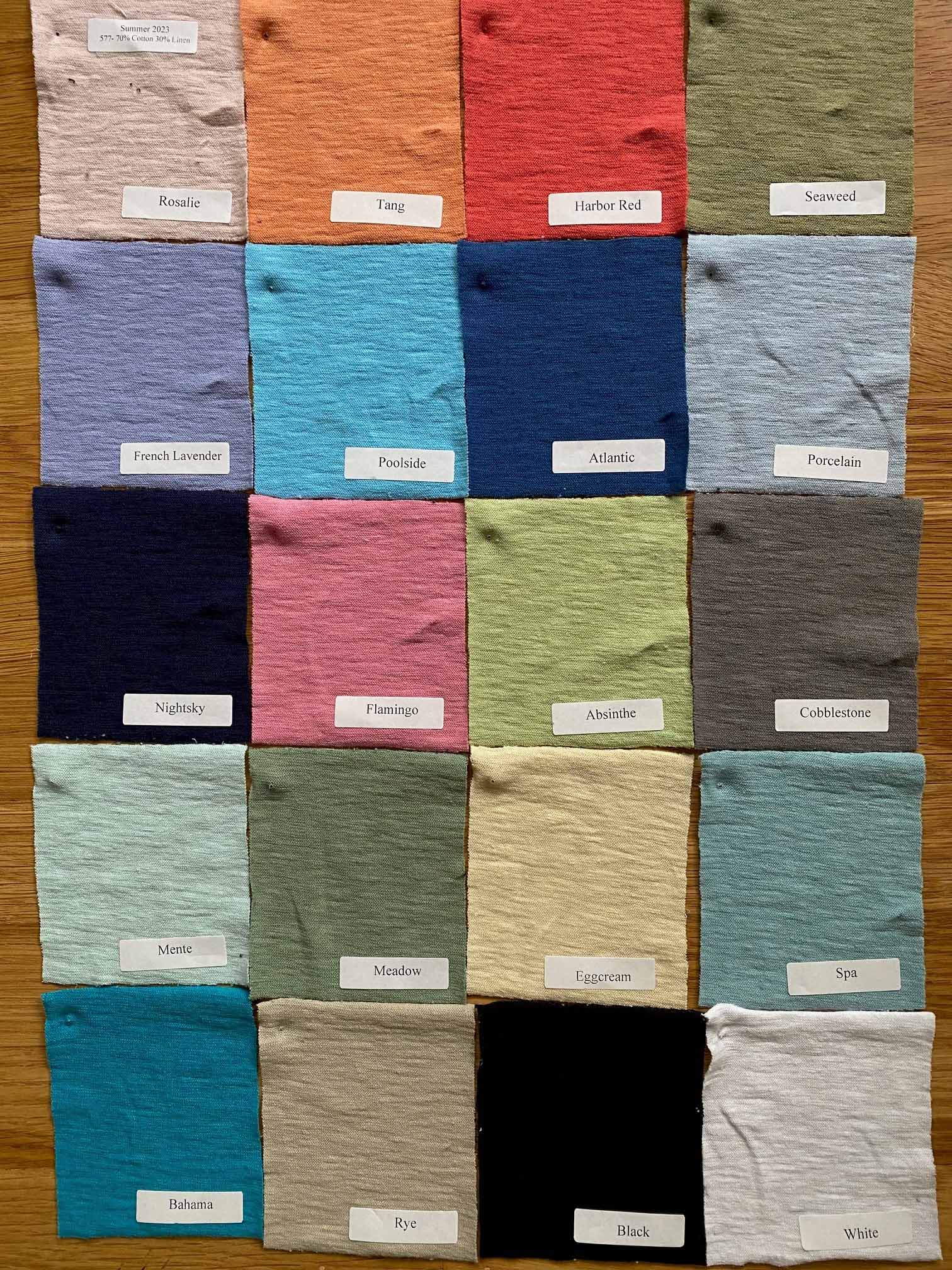 | Colors | Atlantic, Bahama, Cobblestone, Eggcream, Flamingo, French Lavender, Meadow, Mente, Nightsky, Poolside, Porcelain, Rosalie, Spa, Tang, Rye, Harbor Red, Absinthe, Seaweed, Black, White |