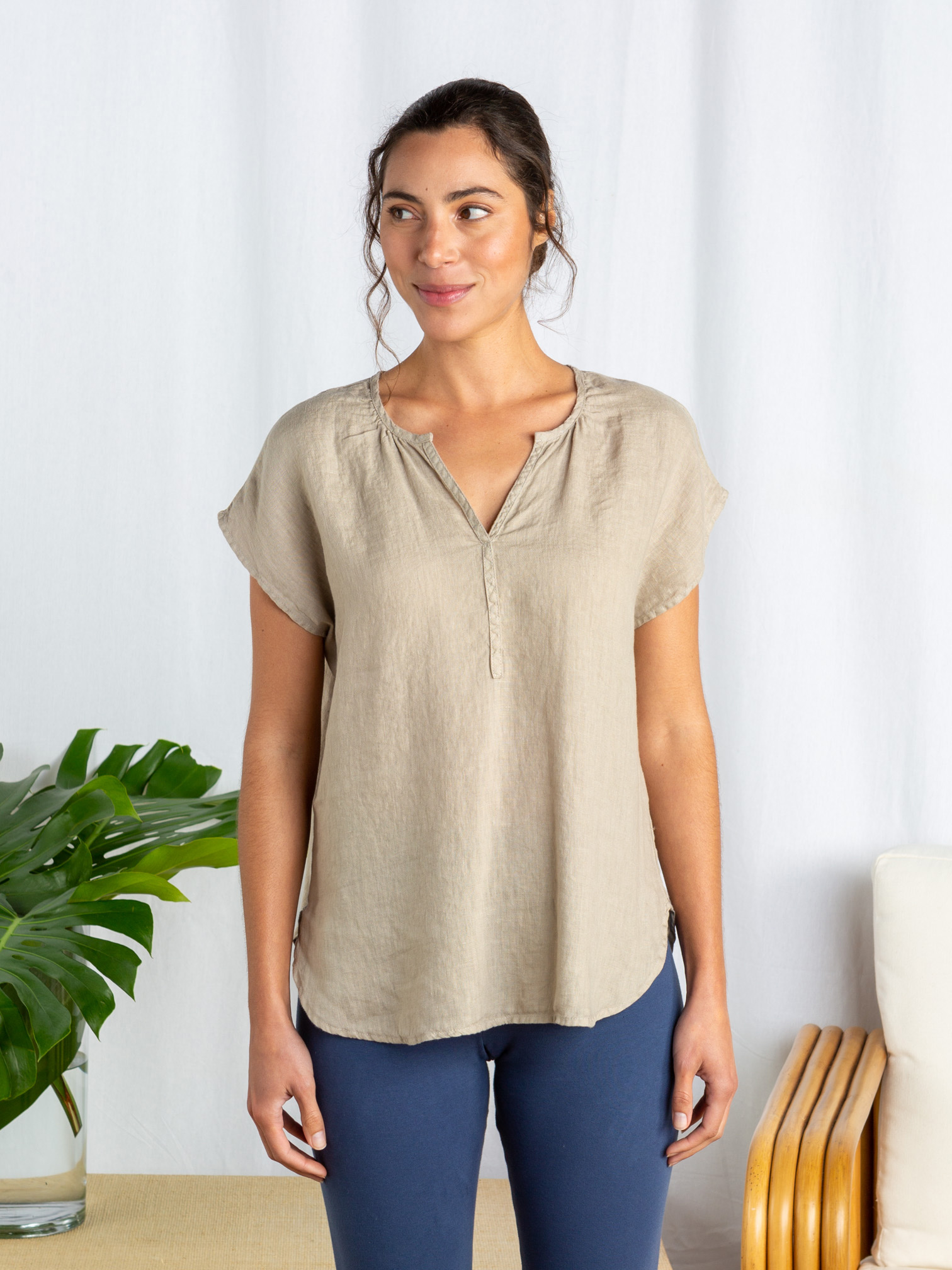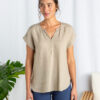 S/S Split Neck Top